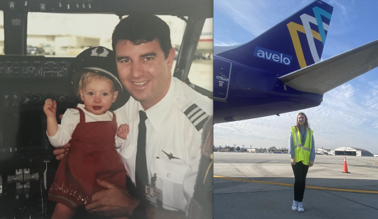 I just found a picture the other day of me when I was probably six months old sitting on my dad's lap. I’m there wearing his captain’s hat. I mean, I don't remember it, but that's probably one of the earliest pictures we have. I always remember my dad coming home from a work trip in his uniform and holding me. That led me to want to travel whenever I could. When I was in middle school, my dad would have a trip and he’d say, ‘Hey, I'm going to Indiana for the day, wanna come grab lunch with me?’ I flew the route with him to Indiana, grabbed lunch and flew back. I'd always take any opportunity that I could get to travel, especially when he was flying.