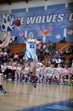 "The attendance of this game was phenomenal, with it being the largest crowd at a women's basketball game in more than 10 years. The gym was filled with pink and the women Seawolves did awesome. As sports teams and sororities do not usually team up to raise money and awareness for a cause, this was an amazing event that we hope to participate in in the future," says student Leanna Biddle.